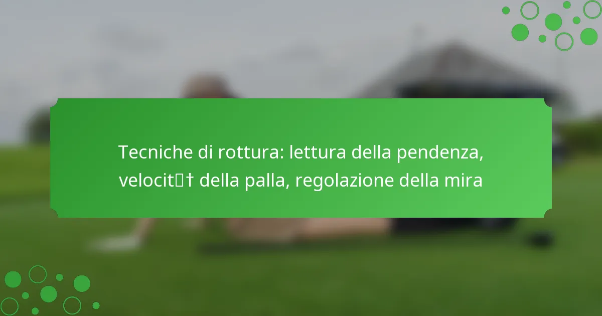 Le tecniche di putting in rottura coinvolgono tre componenti principali: lettura della pendenza, velocità della palla e aggiustamento della mira. Dominare questi elementi è cruciale per migliorare la propria precisione nel putting sui green in pendenza.